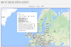 Built using data provided by George Mason University's Speech Accent Archive, this map allows users to explore accents around the world as they all read the same sample paragraph.