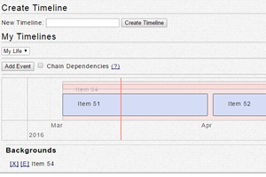 As part of an effort to develop genealogical tools for documenting lives and relationships between people, places and things through time, I am currently working on a simple Timeline application that will allow users to create events, assign dependencies between these events ("I wouldn't have met Barbara if I hadn't taken that trip to Venice back in 1998"), and then visualize how their lives might be different if they remove certain events, or see how experiences chain together to bring about important events later in life.