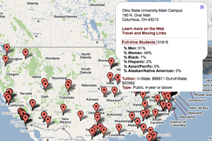 College Search Tool: Plotting college search results using Google Maps and IPEDS Data.